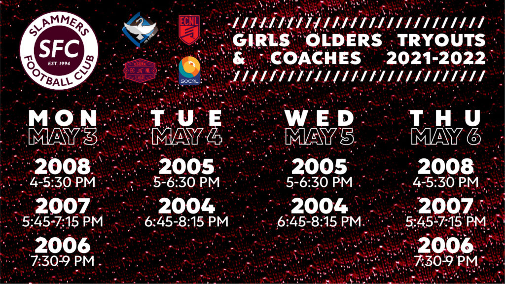 NEW NEW NEW!!! Tryouts and coaching assignments for the 2021-2022 Season! WE ARE SO EXCITED and hope you are too! We will see you out on the field Slammers Family⚽️ If you have questions, please email slammersfcinformation@gmail.com